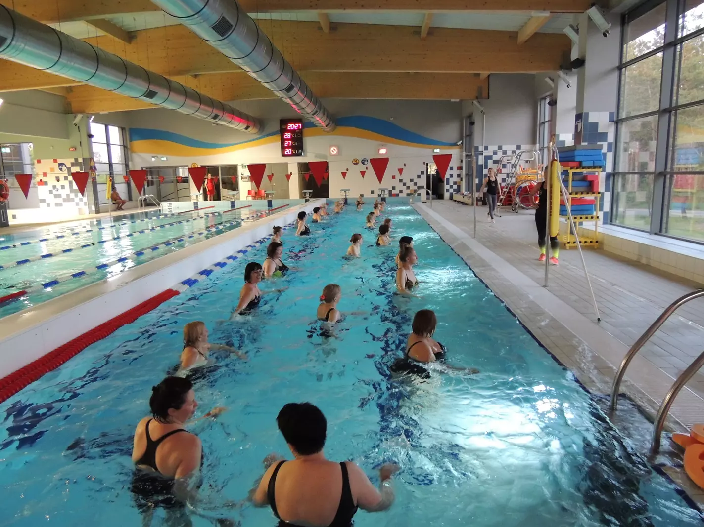 Zaletą aqua fitness jest przede wszystkim zbawienny i nieoceniony wpływ na zdrowie psychiczne i fizyczne, redukuje stres.